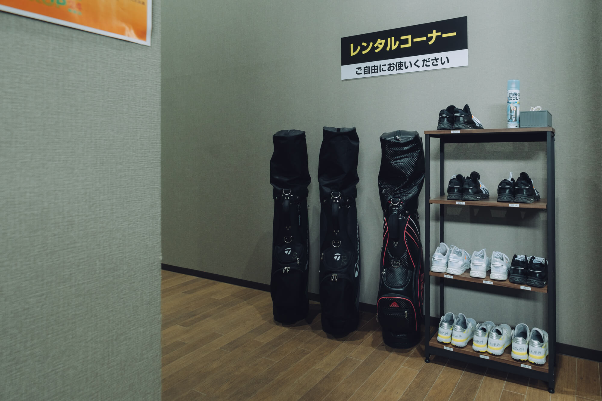 クラブはもちろん、シューズやグローブまで練習に必要な一式を全て無料レンタルできます。クラブを持っていない方や急に練習したくなった方でもご利用できます。