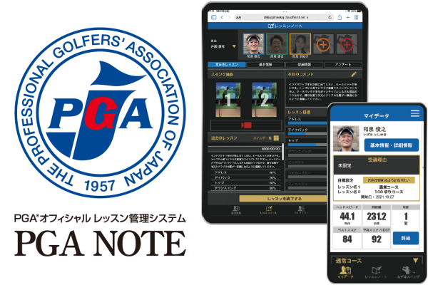 ワンポイントレッスンで物足りない方に向けて有料のマンツーマンレッスンをご用意しています。専用サイト「PGA NOTE」を使用し、スマートフォンでレッスンの記録をご確認いただけます。