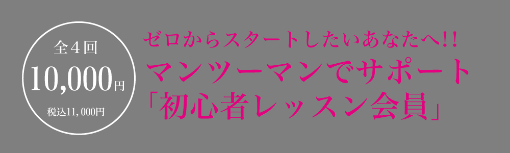 通常レンジ1コマ(約25分マンツーマンレッスン+約30分自主練)×4回/期間2ヶ月以内